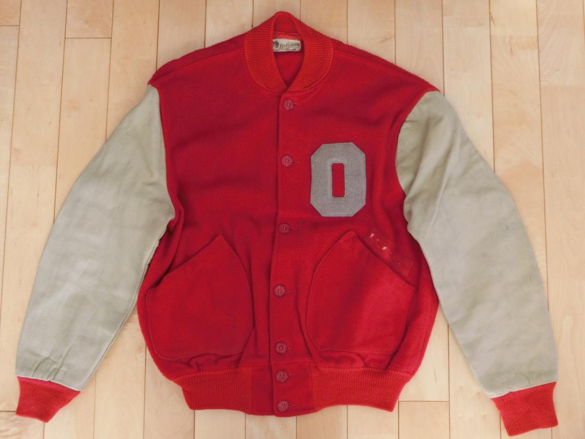 > ビンテージ 40'S~50'S パチポケ スタジャン Holloway サイズ44 赤色 袖革 XL
