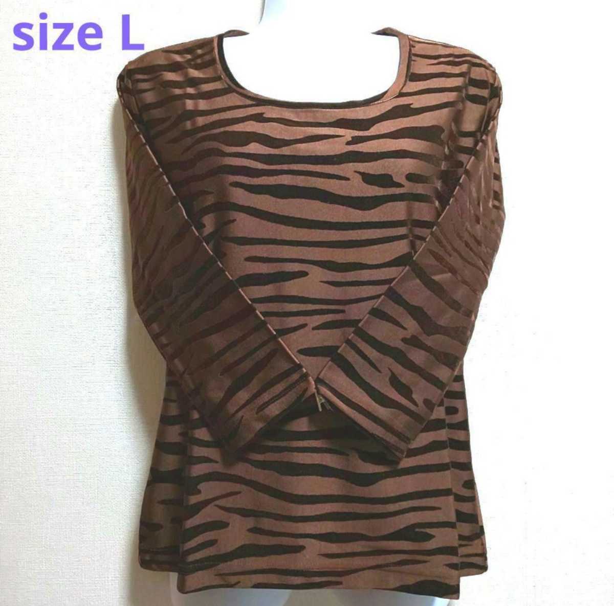 - ゼブラ柄 レオパード カットソー Lsize ブラウン系色