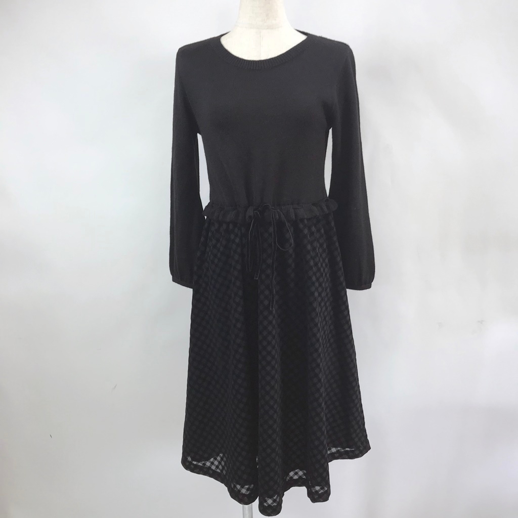 - ELLE/エル 長袖 ワンピース ブラック 黒 サイズM 裏地あり レディース