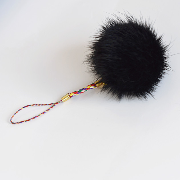 - 携帯電話ストラップ スマホストラップ ミンクファーボール ブラック