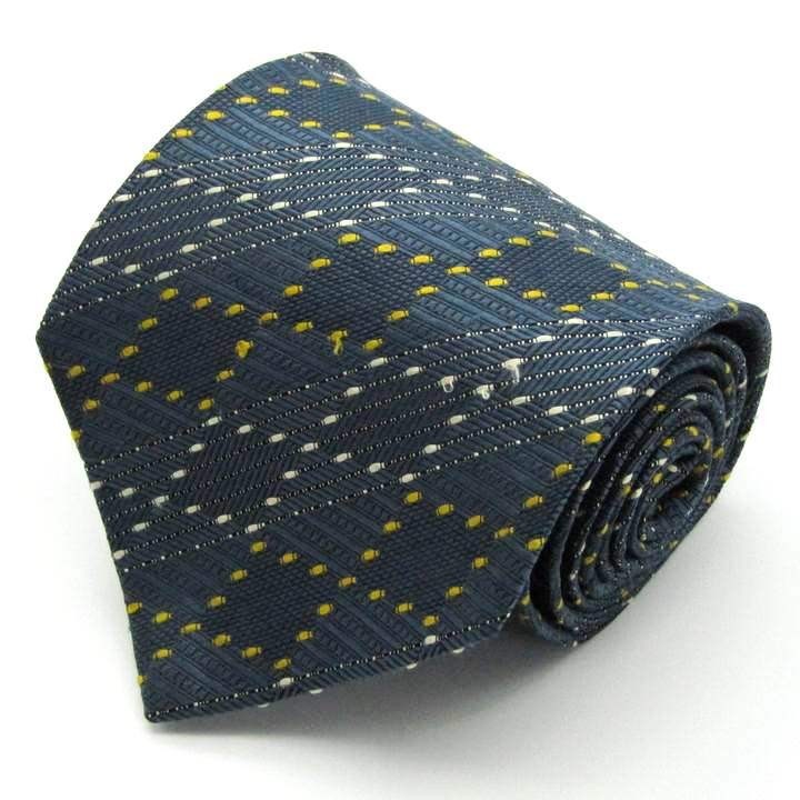 - ピエールカルダン 格子柄 高級 シルク ブランド ネクタイ メンズ ネイビー 良品Pierre Cardin