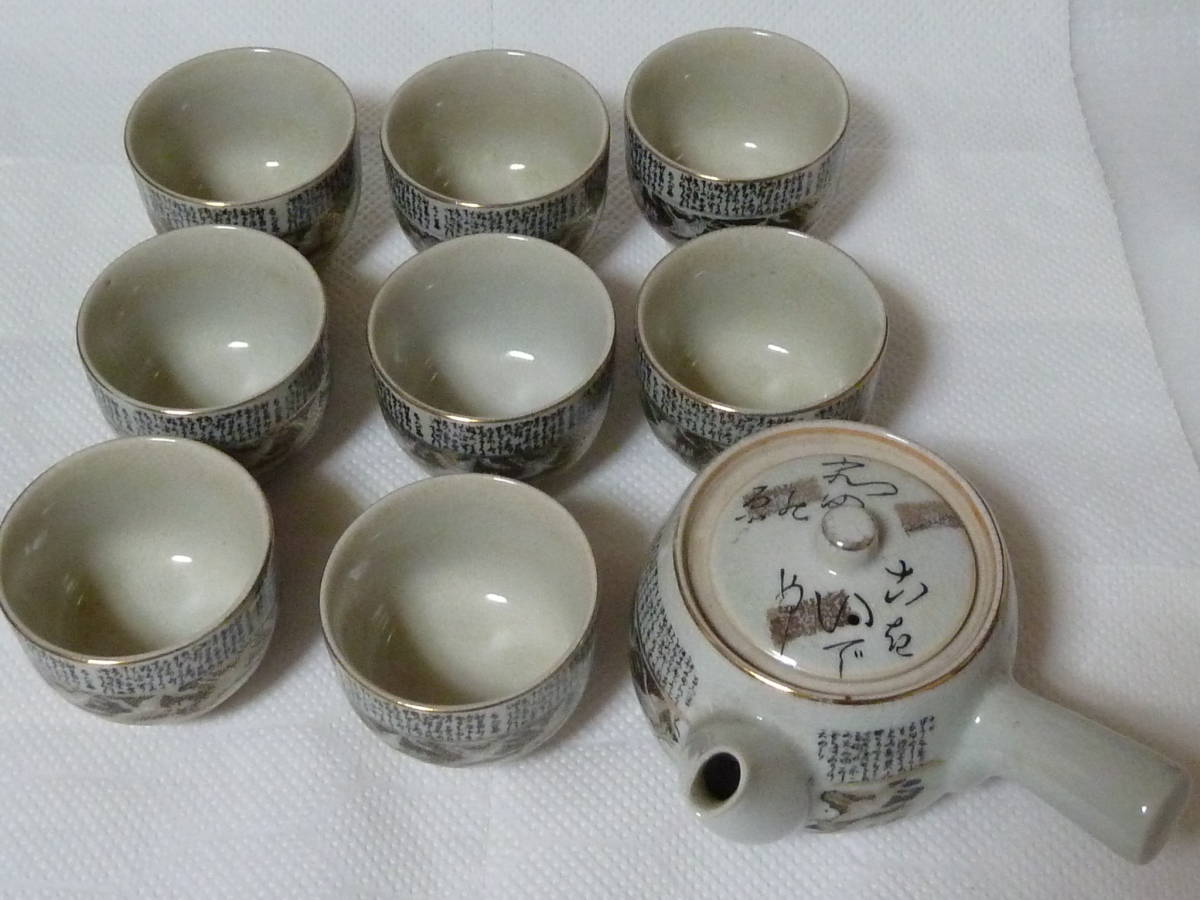 - SIW525 九谷 急須 湯呑 8客セット 鶴模様 貫入 茶器 茶道具 レトロ