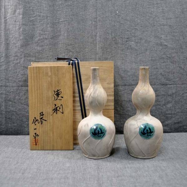 松屋窯 松本佐一 作 九谷焼 徳利 2本 共箱 です。