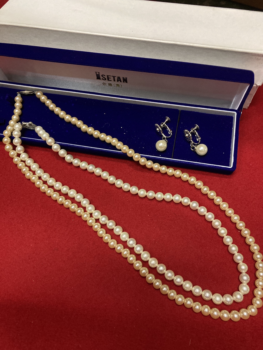 - 【真珠ネックレス&イヤリングセット】冠婚葬祭 装身具 ジュエリー 正装 7mm 保管品【23/01 TY-1B】