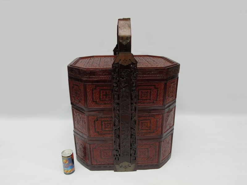 - 提藍 ■ 竹編提手茶籠 特大 [横約49.2cm×h約68㎝] 龍鳳呈祥 ■ 茶道具 天然木 中国唐物 煎茶道具 №8594■