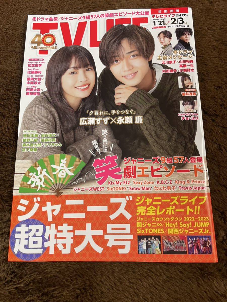 - ★「TV LIFE」2023年1/21~2/3号(2/3号)広瀬すず・永瀬廉表紙巻頭★首都圏版 Hey!Say!JUMP・SixTONES・関西ジャニーズJr.なども