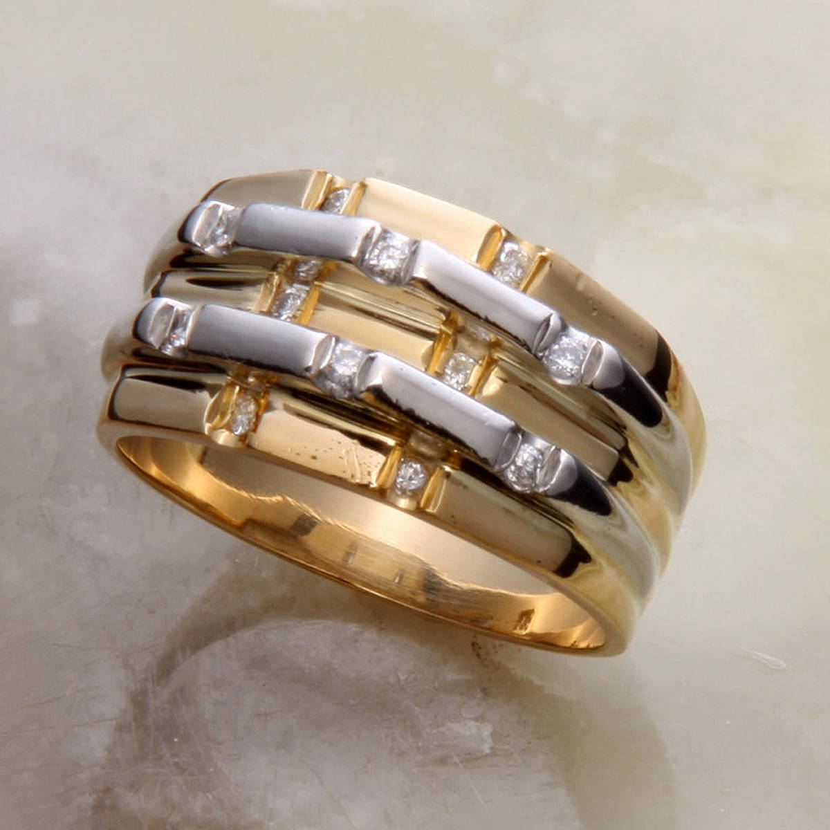 - ke9504◆磨き済 K18/Pt900 コンビリング 天然ダイヤモンド 幅広デザイン 11.5号
