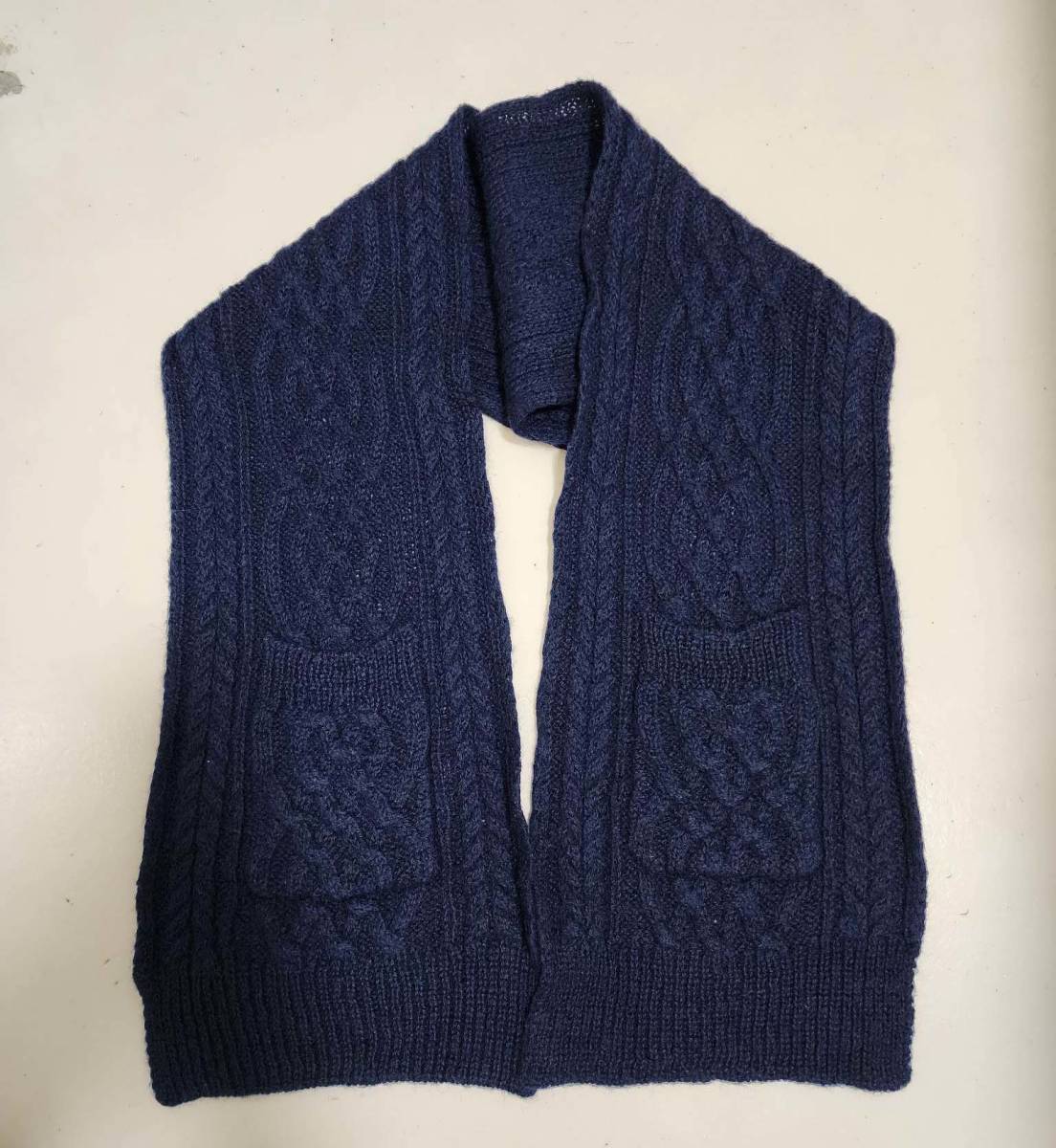 - 暖かい カーディガン風ポケット付きマフラー ウール 紺