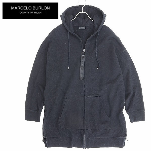 > ◆MARCELO BURLON マルセロ バーロン ビッグシルエット プリント フーデッド ジップ パーカー 黒 ブラック XS
