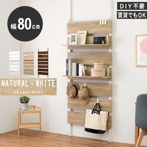 - 送料無料 突っ張りウォールラック KTR-3148 横幅80cm 壁面収納 穴あけ不要 賃貸住宅OK DIY不要 ナチュラル-ホワイト NA-WH