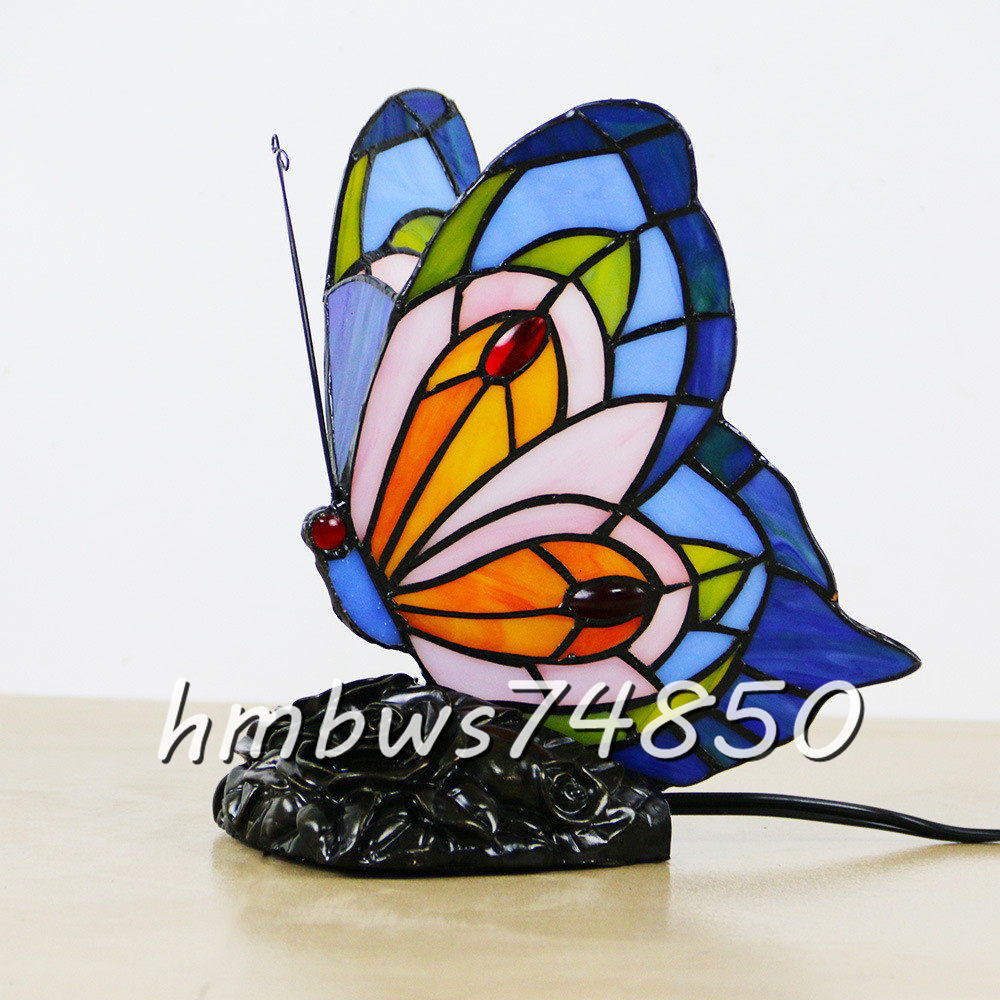 - 稀少品◆芸術品ステンドランプ テーブルスタンド 蝶 照明 ティファニー技法 レトロな雰囲気 ステンドグラス 室内装飾