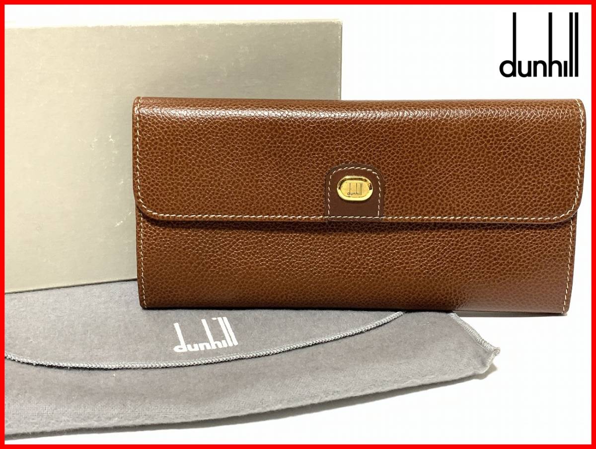 - 即決 dunhill ダンヒル 3つ折り レザー 長財布 箱・保存袋 茶 ウォレット レディース メンズ mbs