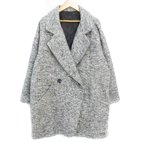 > ヘザー Heather チェスターコート ロング丈 ダブルボタン 総柄 ウール混 F グレー 黒 ブラック /FF5 レディース