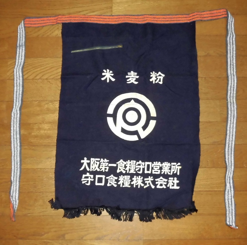 > 米麦粉 大阪 守口食糧 前掛け 昭和レトロ 当時物 業務用 非売品 藍色 ポケット付 USED 訳あり/オールド企業物ヴィンテージ骨董リメイク