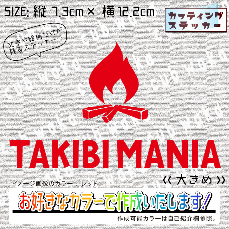 - 焚き火×TAKIBIMANIA①ステッカー 文字絵柄だけ残るカッティングステッカー・車・カブ・二輪 CAMP・キャンプ・焚き火 リアガラス