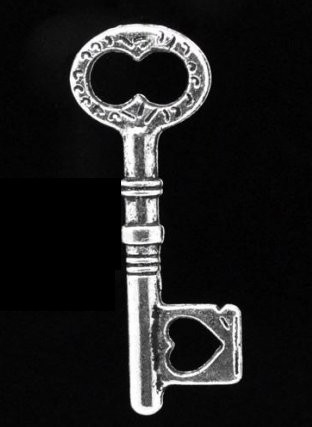 - キー型1個単品アクセサリーパーツメタルチャーム(アンティークシルバーカラー)鍵34mm×12mm