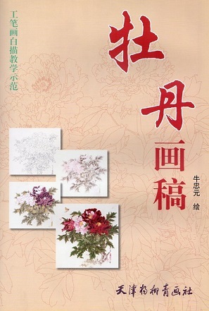 - 9787807387701 牡丹画稿 工筆画白描教学示範 下絵創作 大人の塗り絵 中国絵画
