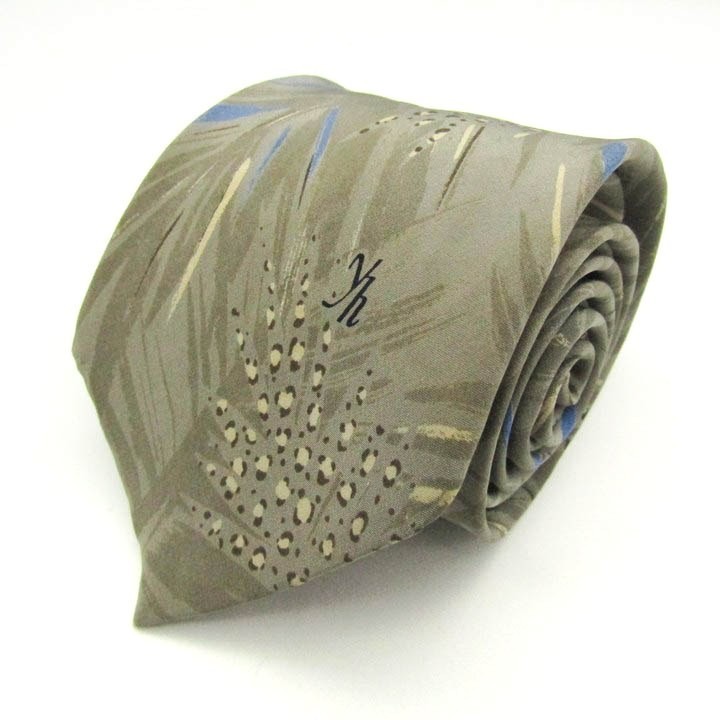 - ユキコハナイ ボタニカル柄 シルク ワンポイント ブランド ネクタイ メンズ ブラウン YUKIKO HANAI