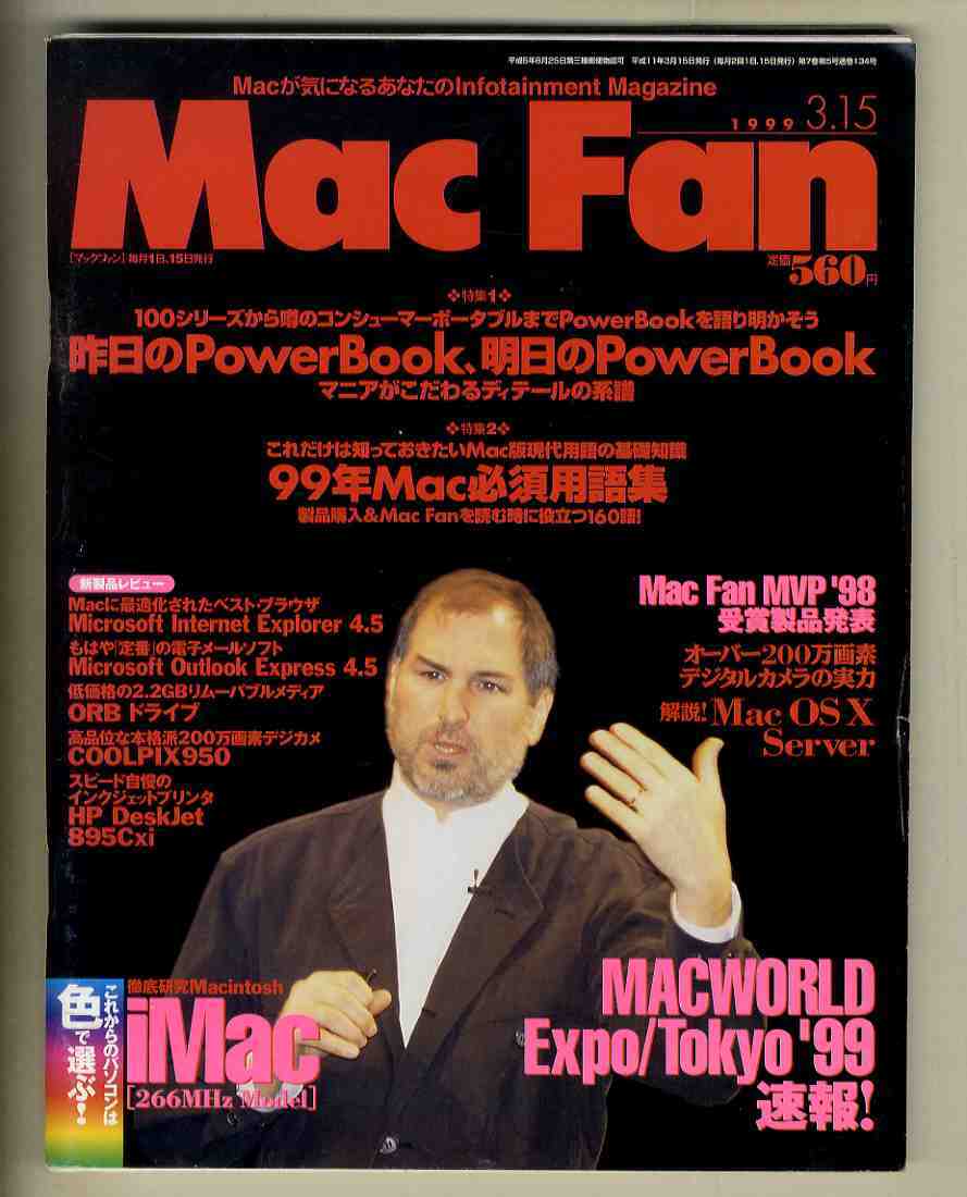 書名/記事: 99.3.15 マックファン MacFan/特集1=昨日のPowerBook 明日のPowerBook、特集2=99年Mac必須用語集、徹底研究Macintosh - iMac(266MHz Model)、MACWORLD Expo/Tokyo '99速報、解説! Mac OSⅩ Server、…