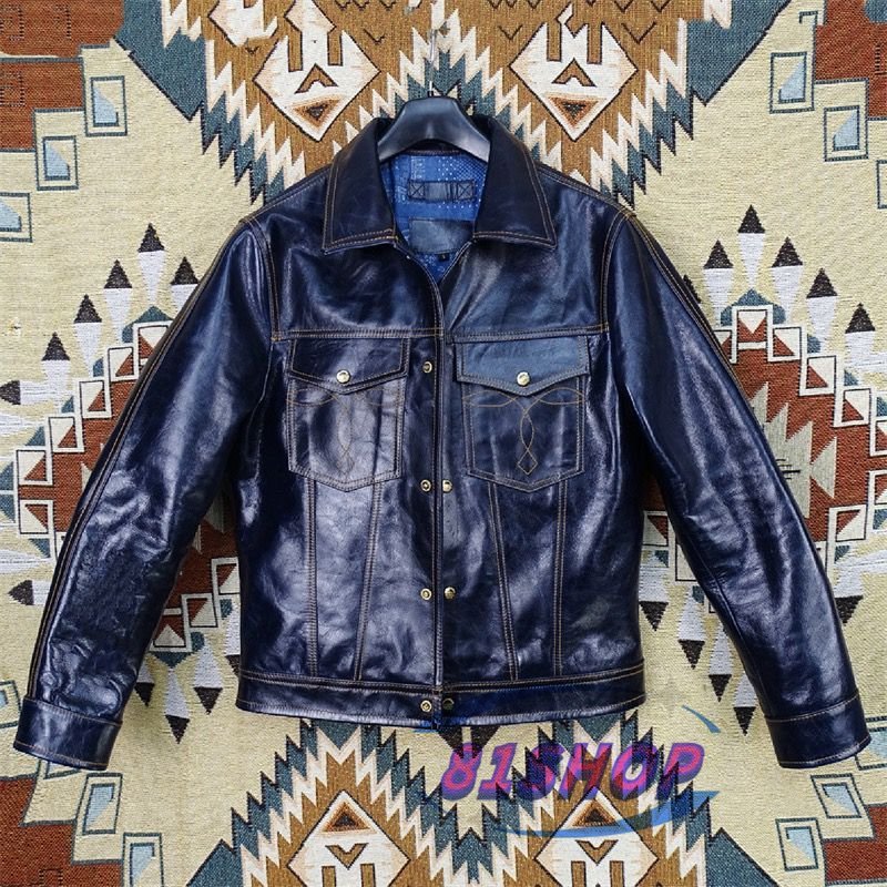 - 「81SHOP」馬革 ホースハイド レザージャケット 革ジャン ライダース メンズファッション 本革 植鞣し 藍染 立体裁断 アメカジ ジャンパー
