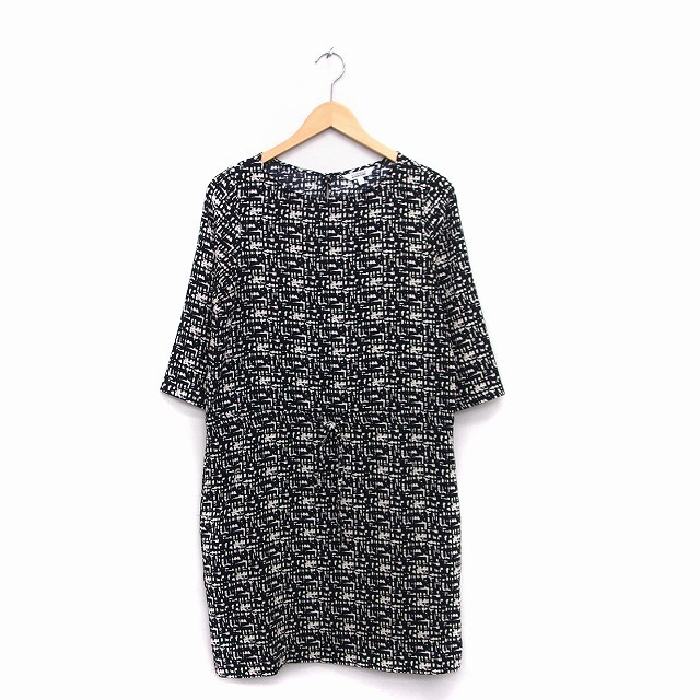 - アルファキュービック ALPHA CUBIC ワンピース 七分袖 膝丈 総柄 9 ブラック 黒 /KT5 レディース