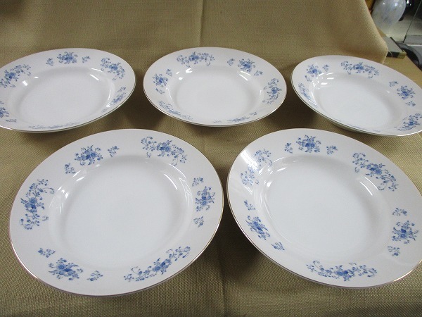 - ★食器 お皿 花の絵柄 5枚 素敵です 径20㎝ 高さ4㎝ ※底に少々汚れありますが状態よい tm2302-25-2★