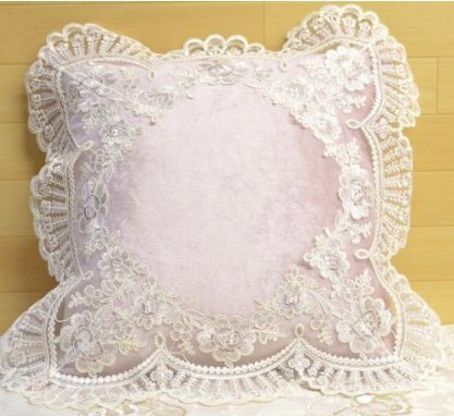- レース ベルベットフリルクッション 3点セット 45x45cm ピンク