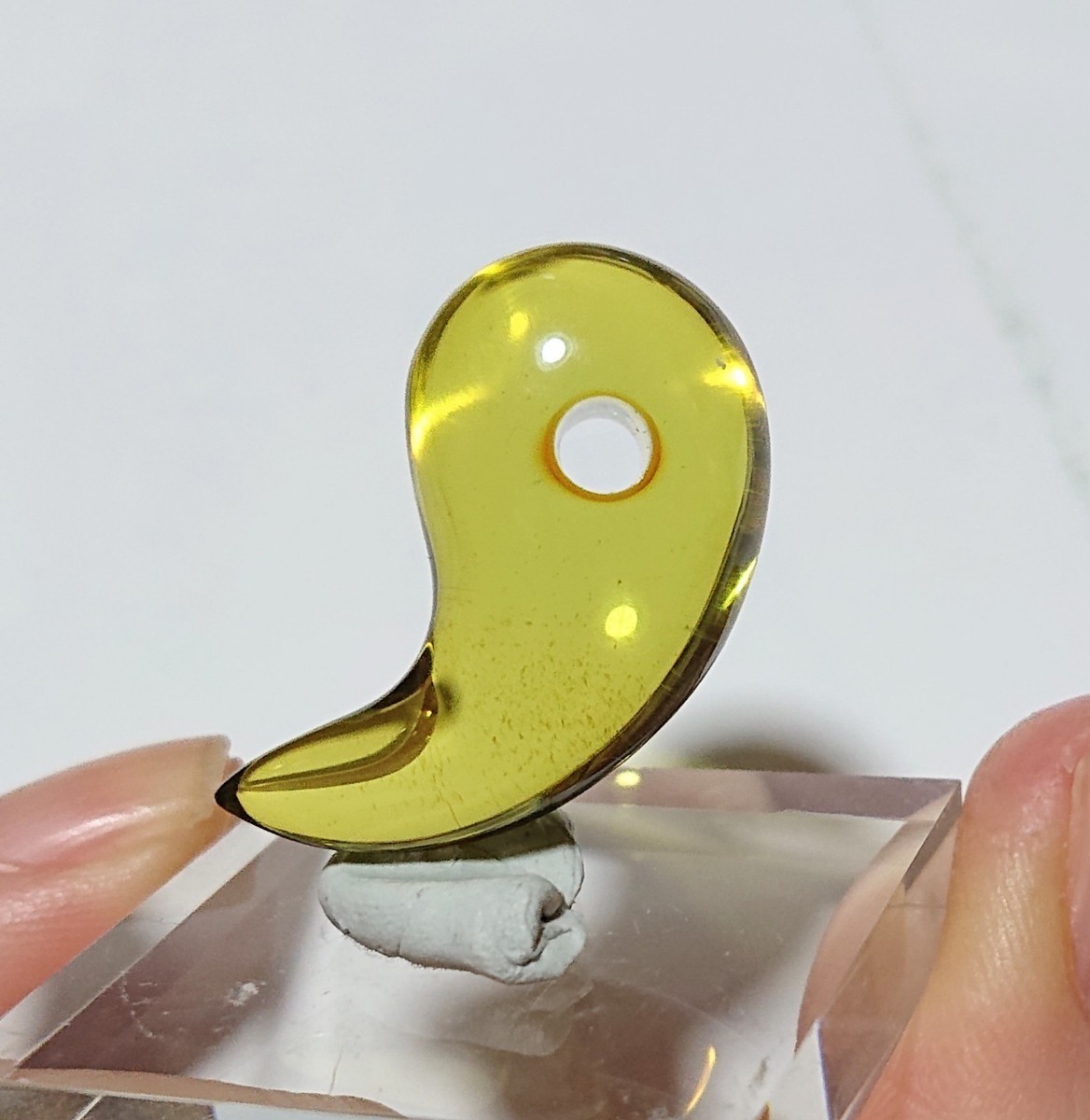 - コロンビア産 グリーンアンバー 勾玉/琥珀 美品