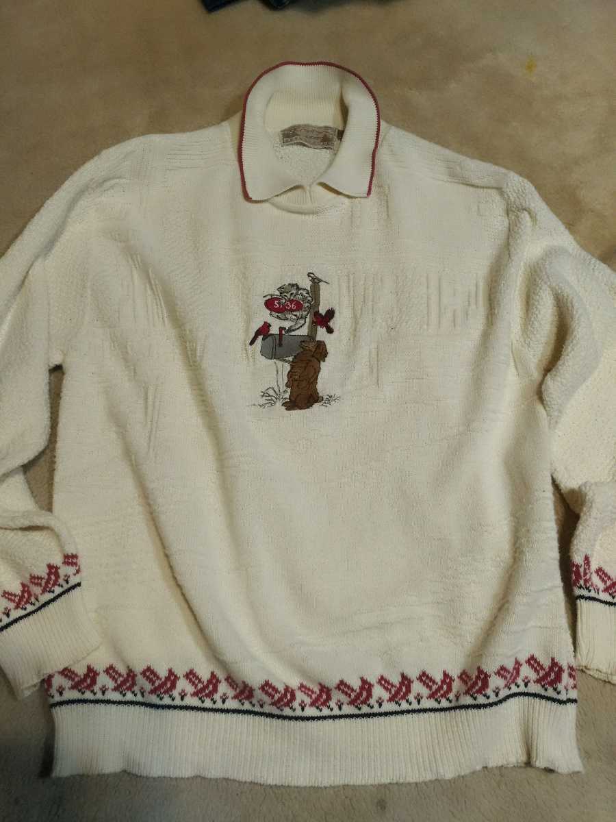 > 超希少デザイン!OLDアメリカン USA製 春物コットンニットセーター メンズM made in usa アメカジ レトロ80s当時物