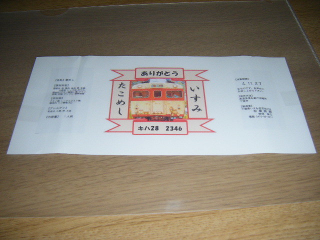 - 【いすみ鉄道】ありがとうキハ28 2346 たこ飯弁当 掛け紙1枚【松屋旅館】