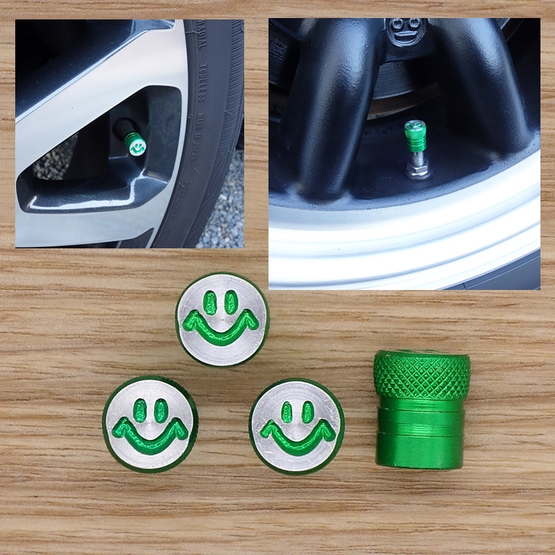 - 【送料無料】エアーキャップ 4個セット グリーン スマイル SMILE カスタム 車用 バイク用