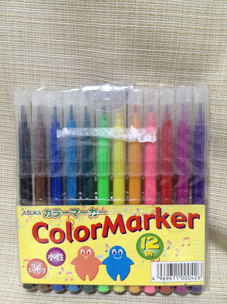 - ASUKA カラーマーカー 12色 水性 安全キャップ ペン