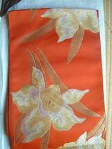 - 金銀花柄刺繍の名古屋帯 朱赤 未使用
