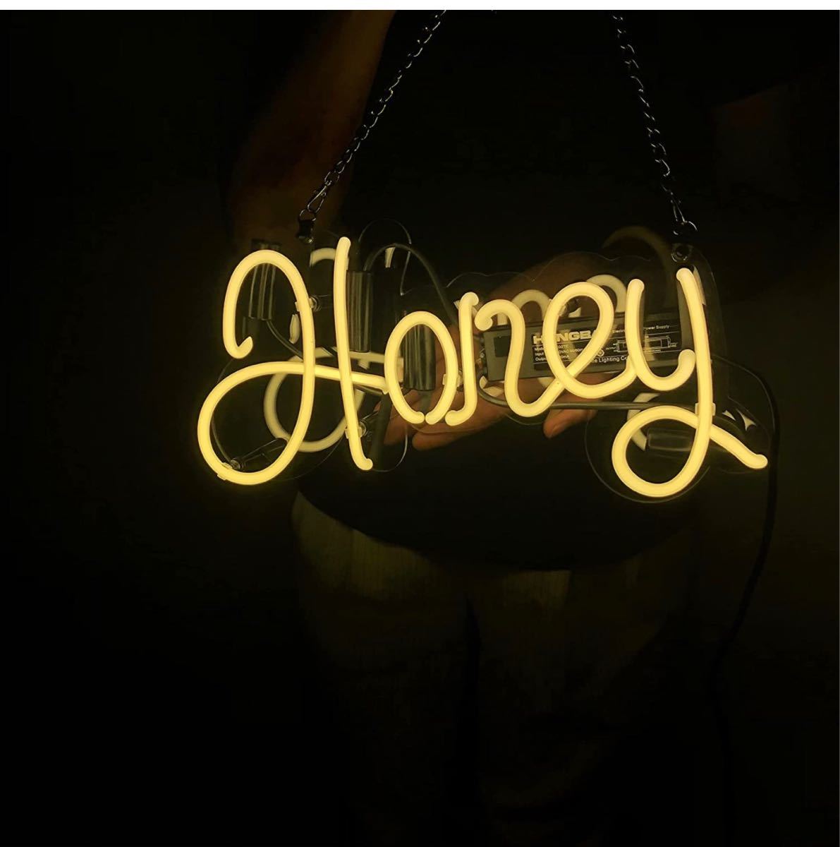 - オリジナル ネオンサイン Honey イエロー 筆記体 ガラスネオン 看板 オーダーメイド