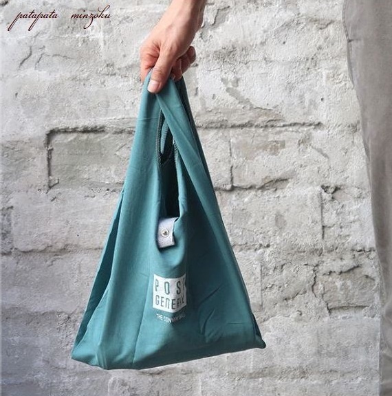 - ポストジェネラル コンビニバッグ ブルー ハンドバッグ 折りたたみ エコバッグ ユニセックス