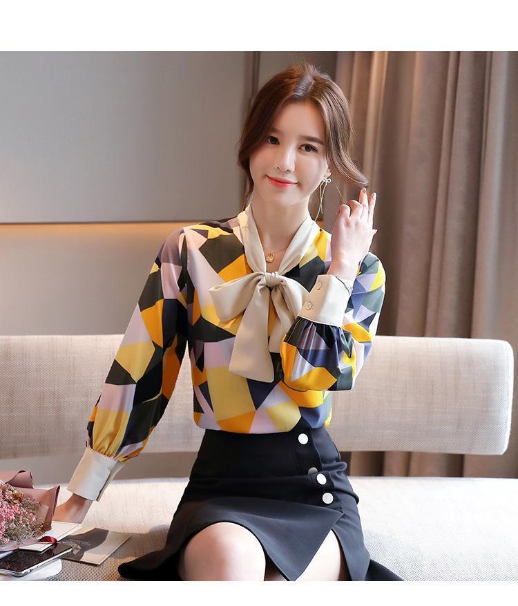 - 【マルチカラー★L】レディースリボン長袖 ブラウス シャツ