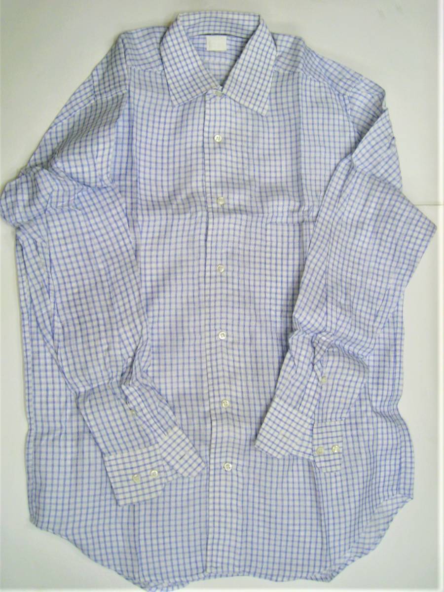 > 【東京 谷中 質屋おぢさん】極美品イタリー製 ロロピアーナ シャツ 白地に鮮やかなブルーの格子 サイズM