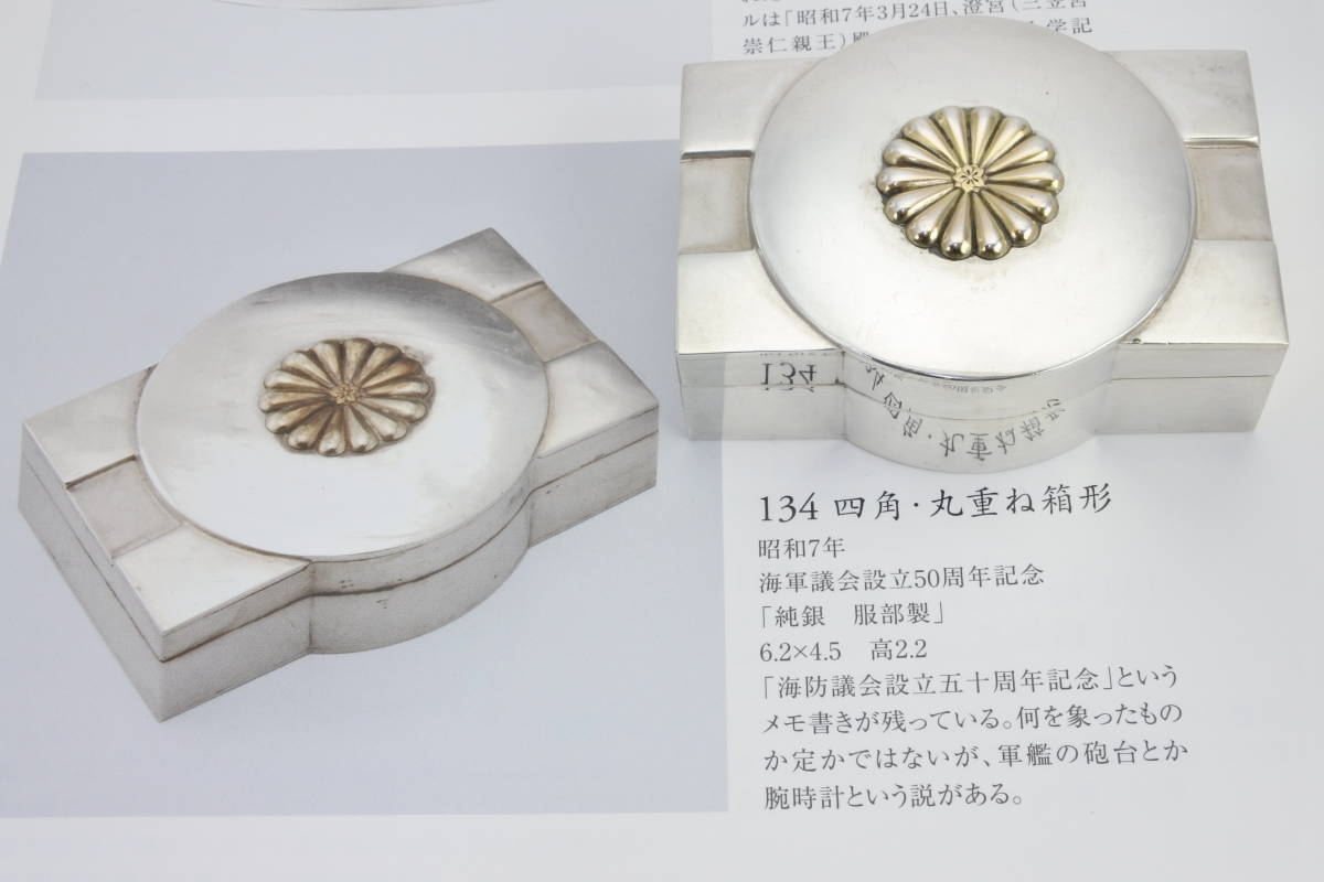 - 皇室ボンボニエール 純銀 昭和7年 海防議会設立50周年記念 四角・丸重ね箱形ボンボニエール *極稀少品