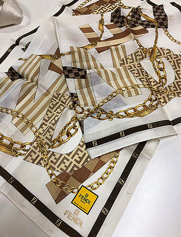 - 新品 フェンディ FENDI ◆レア柄★大判ハンカチミニスカーフ★膝掛け58×58㎝ (0408E41800)