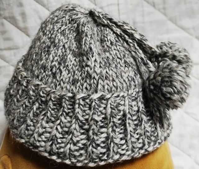 - 帽子 ニット帽 ボンボン グレー ハンドメイド 幼児用 グレー