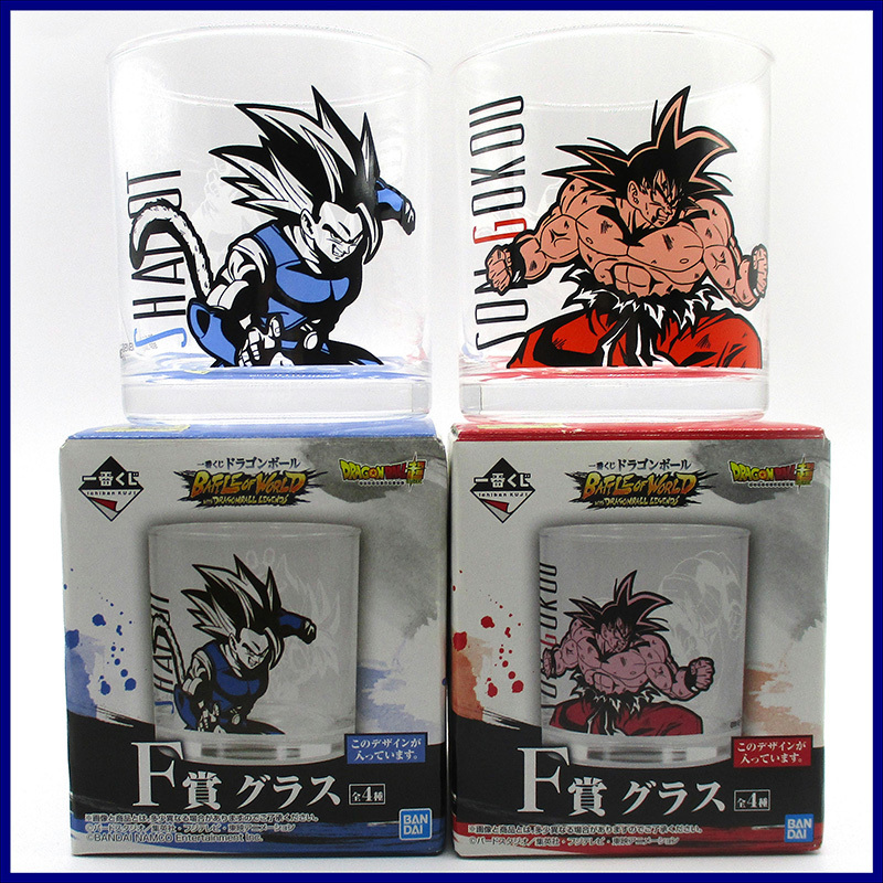 > 一番くじ ドラゴンボール BATTLE OF WORLD with DRAGONBALL LEGENDS F賞 グラス ◆ シャロット 孫悟空 / 2点