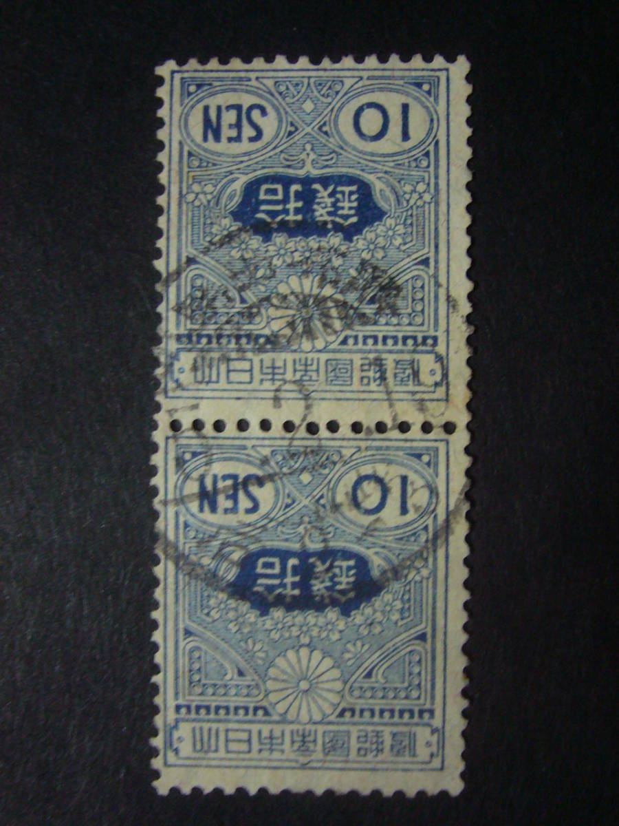 - ★日本切手・使用済★B492 旧大正毛紙 10銭ペア 櫛型印 D欄☆入 時刻入 麻布?○○? 5年