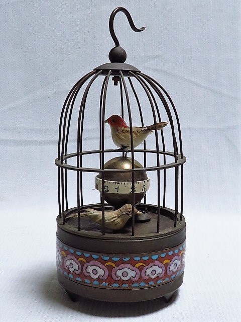 - 鳥籠置時計 からくり時計 ゼンマイ 七宝 アンティーク ジャンク