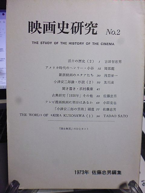- 佐藤忠男・編集/発行 映画史研究 2号 アメリカ時代のヘンリー・小谷 新派映画のスタアたち 小津安二郎論 聞き書き・浜村義康