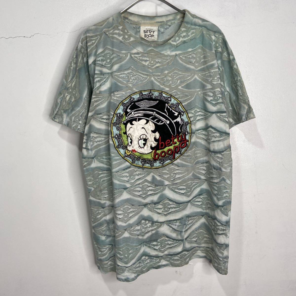 - 送料無料☆90s☆USA製☆BETTYBOOP☆刺繍ワッペン総柄Tシャツ☆ベティー