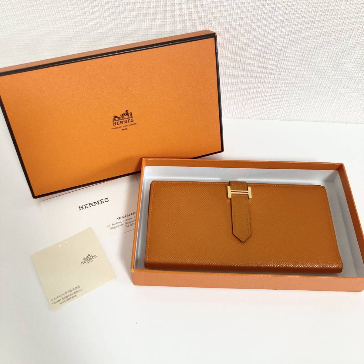 - HERMES ベアンスフレ オレンジ 長財布 □L ゴールド金具
