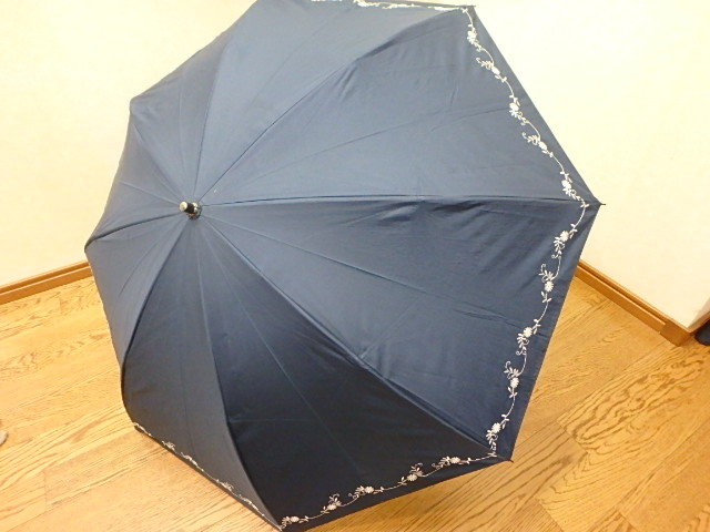 - 60s305k 折りたたみ傘 紺 花柄 雨傘 兼用傘 オーロラ㈱ レディース 女性用 雨具 中古 (北海道・沖縄・離島は発送不可)