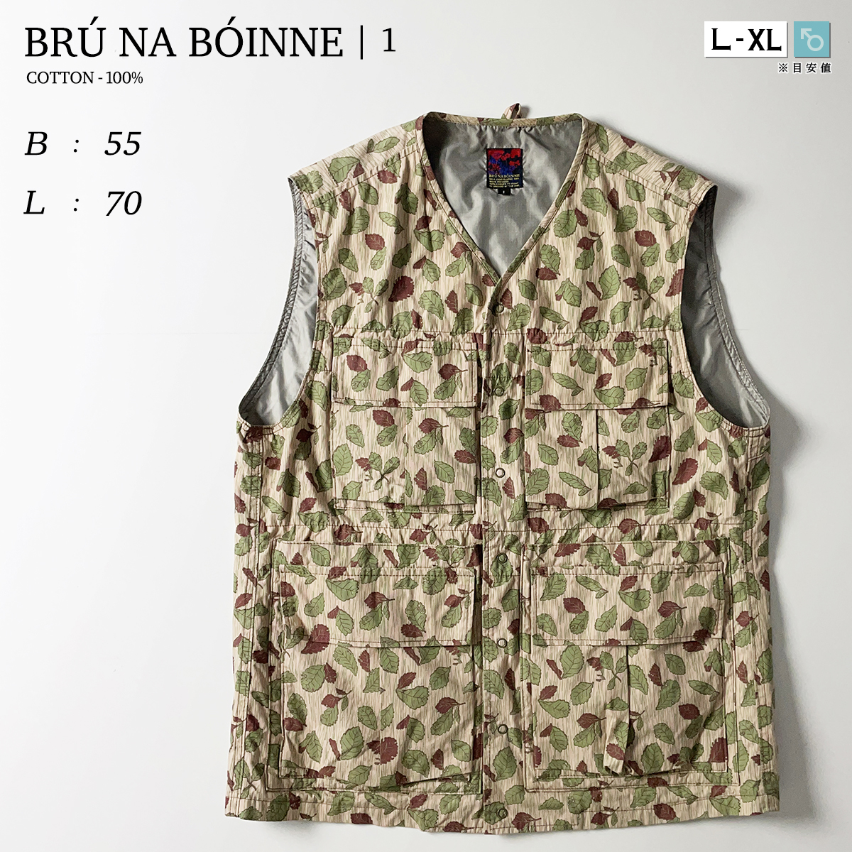 > BRU NA BOINNE カモフラ 迷彩 柄 プリント 薄手 フィッシング ベスト 総柄 ベージュ カーキ Vネック 綿 カジュアル 春 秋 ブルーナボイン 1