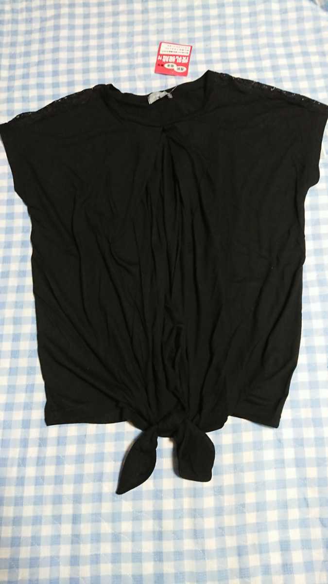 - @♪410☆未使用・保管品☆授乳服☆肩レース前絞りカットソー 黒М