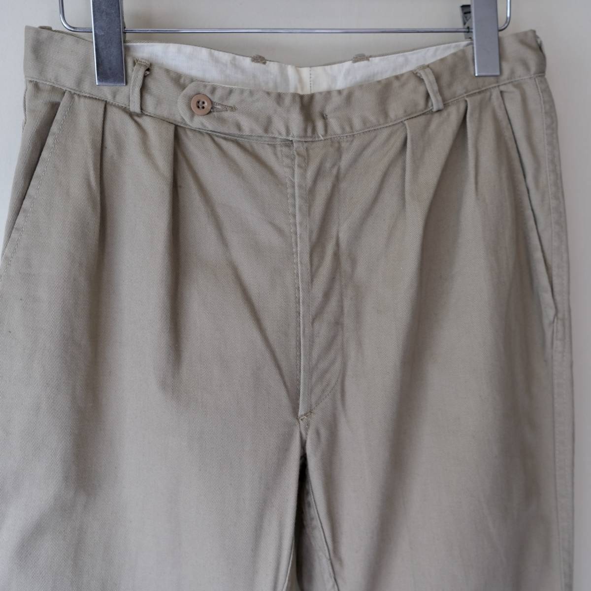 - 【 フランス ビンテージ 】コットン ツイル タック テーパード パンツ トラウザーズ / ベージュ系 / ヨーロッパ ワーク